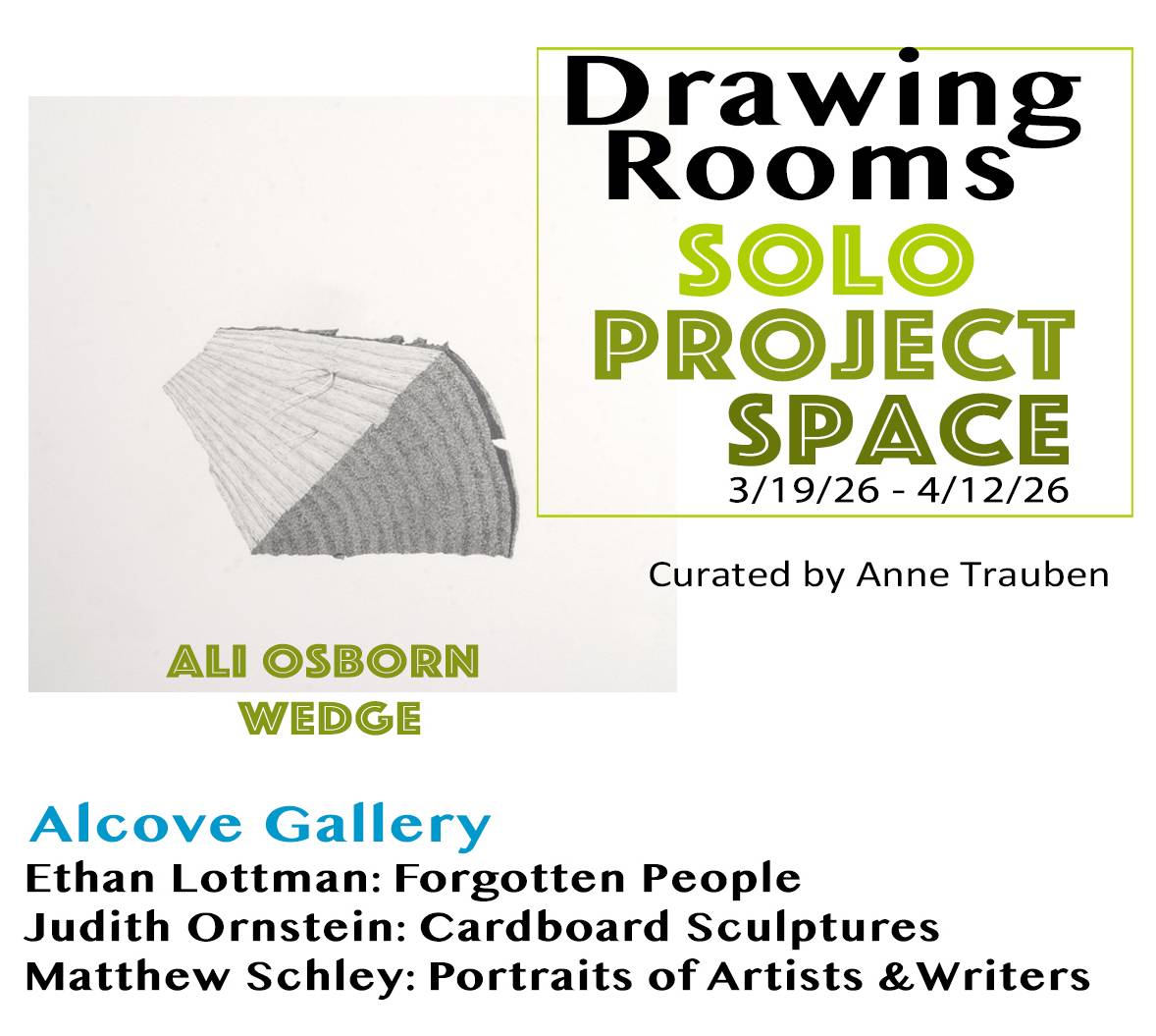MEET THE ARTISTS: this Sunday 2/15/26, 3-5p! Join us for wine, refreshments and conversation with Grid artists: Henry Brown, James M. Kozlik, Barbara Smith Gioia, Catherine Orrok, Sophie LaBell, Virginia Schaffer Block, Christine Janove, Jennifer Krause Chapeau, With Artist Talks by Alcove Artists: Efrat Baler-Moses 4p See more Drawing Rooms Solo Project Space:Cara Galowitz: Driftwood SculptureAlcove Gallery:Efrat Baler-Moses: "Adultereated" Shelly 'Lola' Freund: "Menjunje (Amalgamation)"...