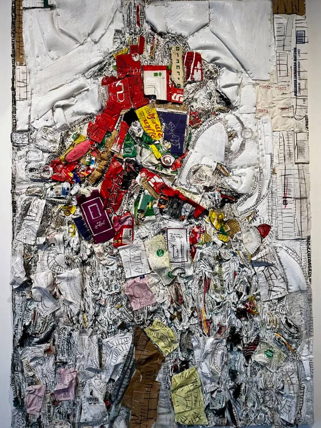 Danielle Baron Atkins: Identity Landscapes. This body of work explores the search for transcendence in the face of the realities of a post October 7th world. Since that fateful date, a search for answers and meaning has driven her to augment her exploration of what it means to be a modern Jewish and Israeli woman with the fundamental questions of humanity and morality to be found in the study of ancient Jewish texts. In these works she attempts to render the complexity of being a woman, a mother, a Jew, and a human in a turbulent world. Through layering, stitching, and material reclamation, she hopes to build a visual language for resilience, memory, and transformation.